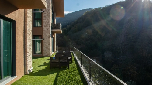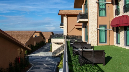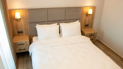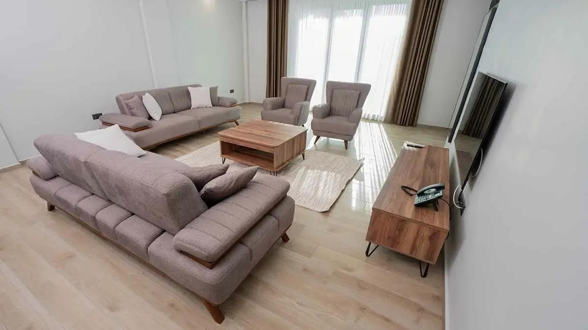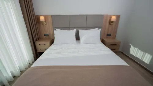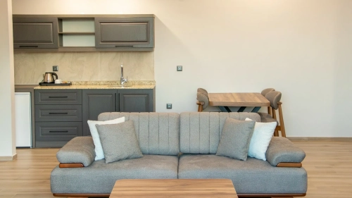 Deluxe Odalarımız, geniş yaşam alanı ve modern tasarımıyla konforu ön plana çıkarıyor. Doğa manzaralı balkon veya teras, mini mutfak, oturma grubu ve şık dekorasyonu ile hem kısa hem uzun konaklamalar için ideal bir deneyim sunuyor.