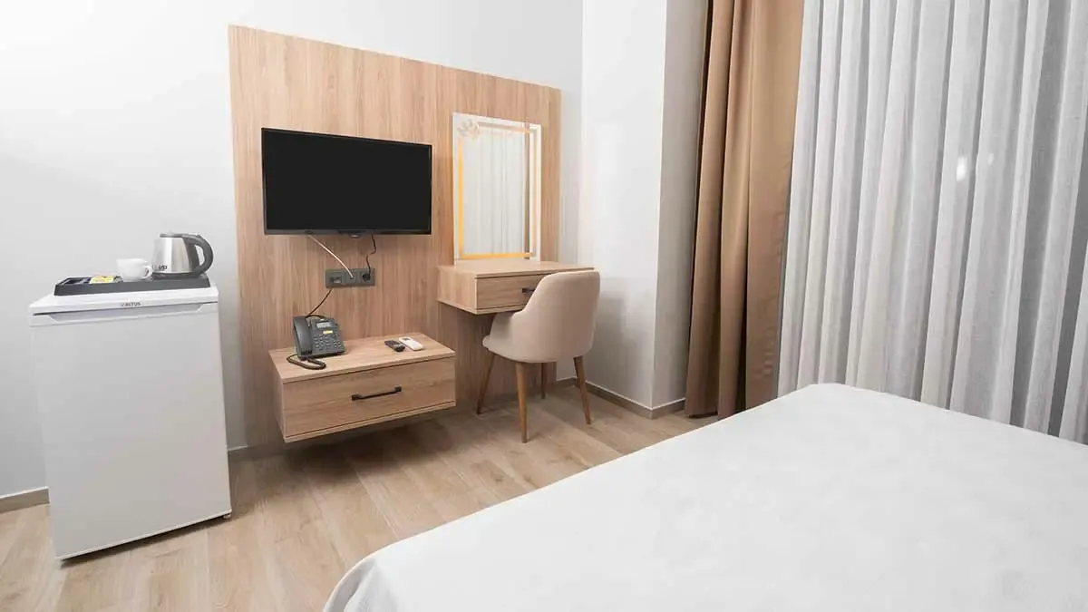 Rahatlık ve işlevselliği bir arada sunan Standart Odalarımız, konforlu yatakları ve modern tasarımıyla misafirlerimizin tüm ihtiyaçlarını karşılamak üzere hazırlanmıştır. Konaklamalar için ideal olan odalarımızda sade ama şık bir atmosfer sizleri bekliyor.